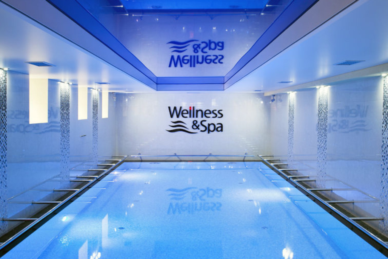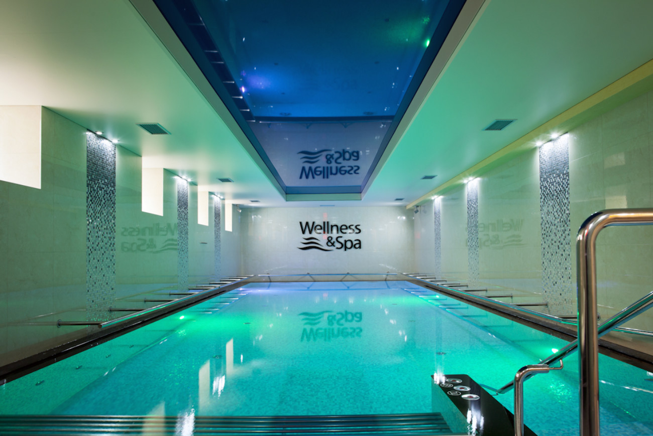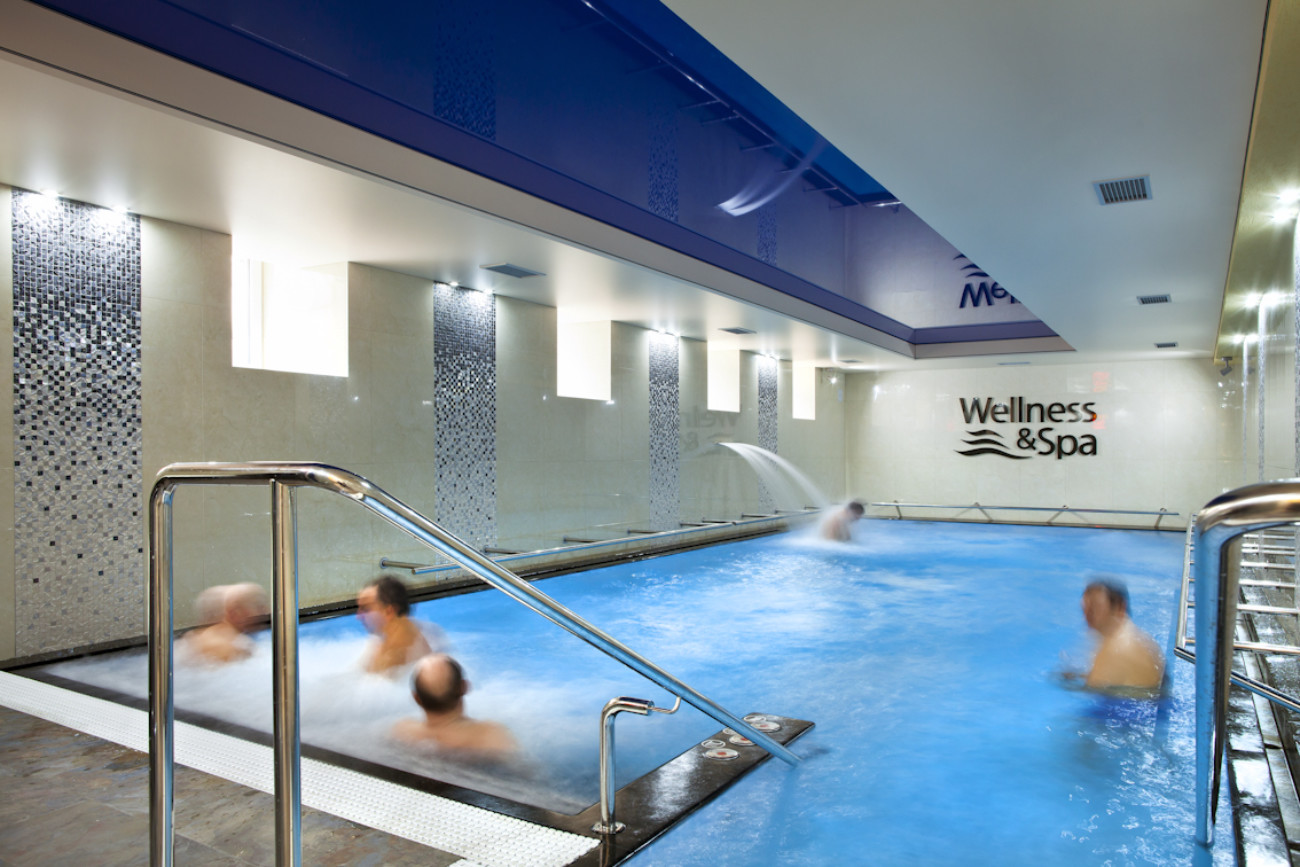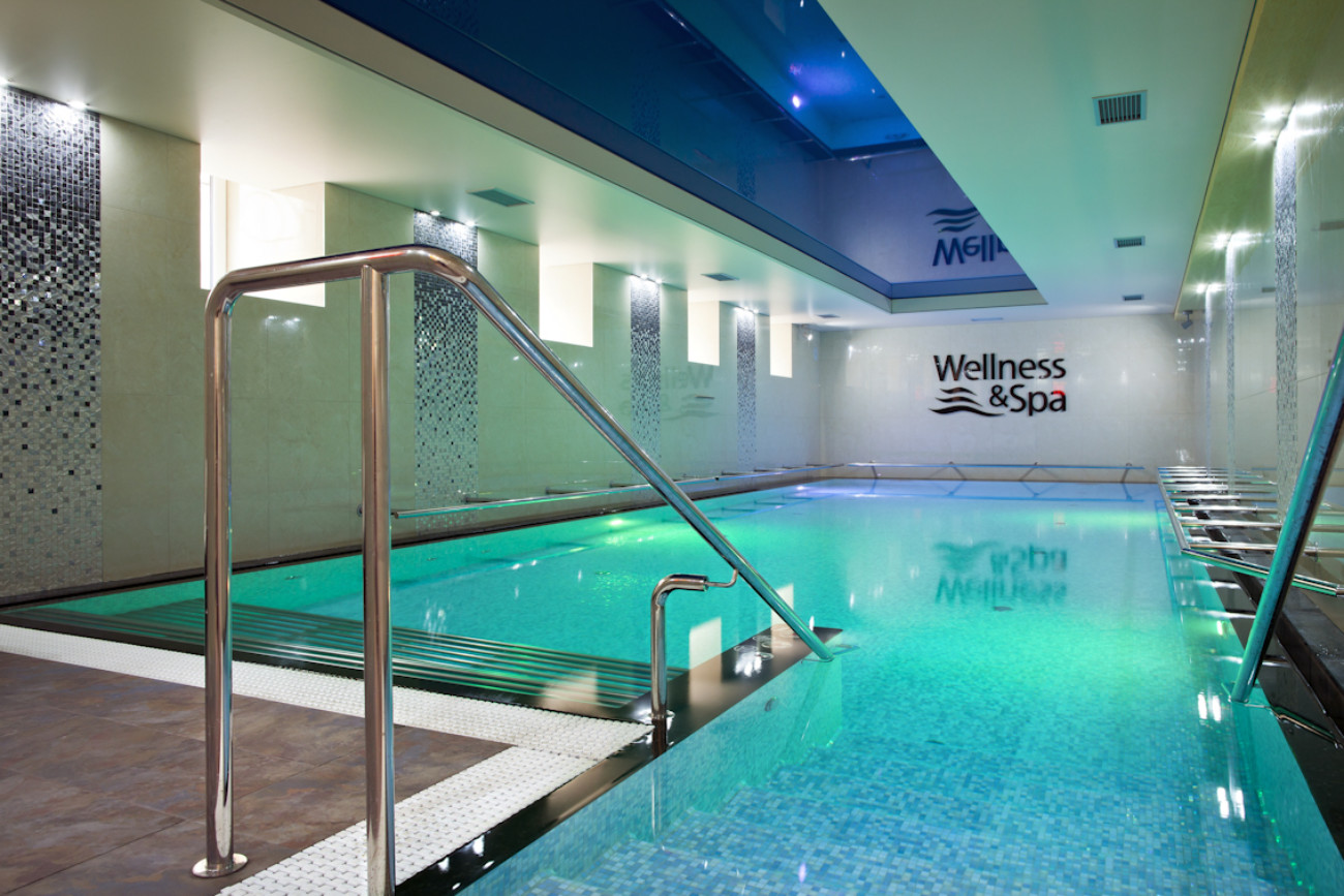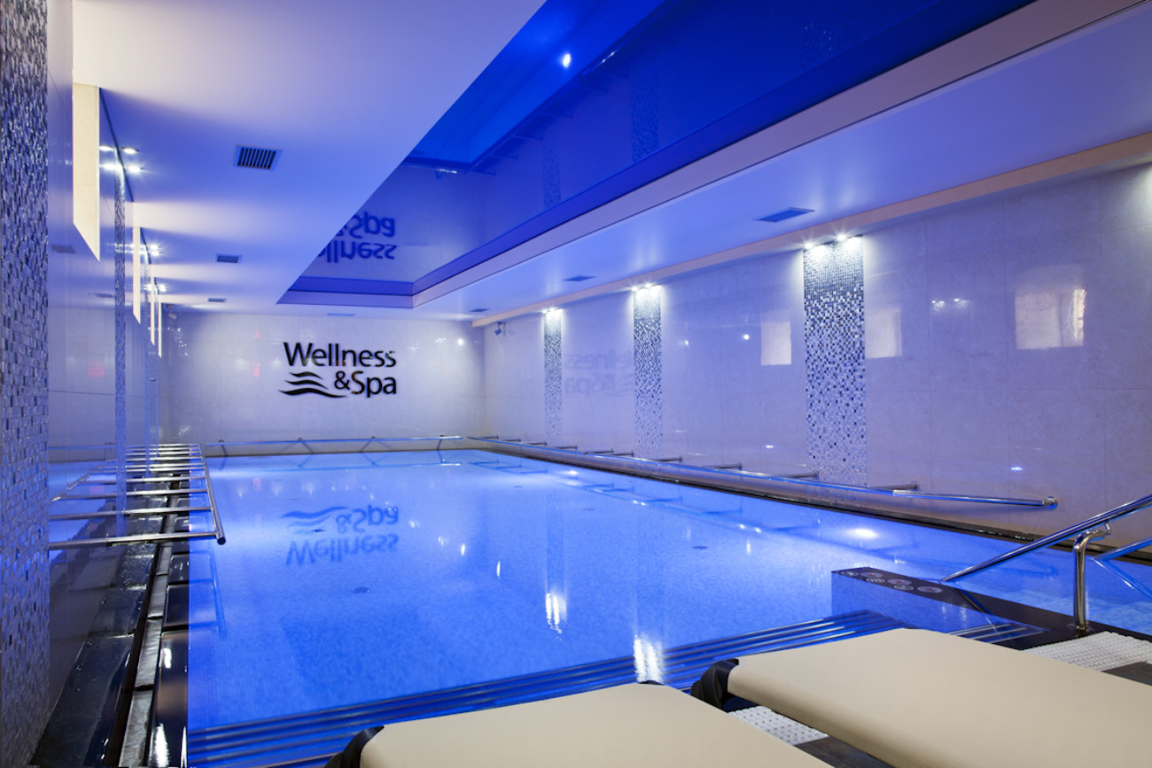 Kombinace matné a lesklé fólie BARRISOL v prostou celého bazénu, Mariánské lázně