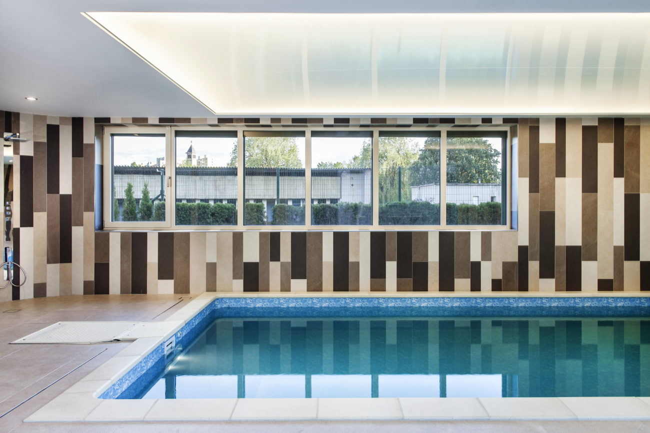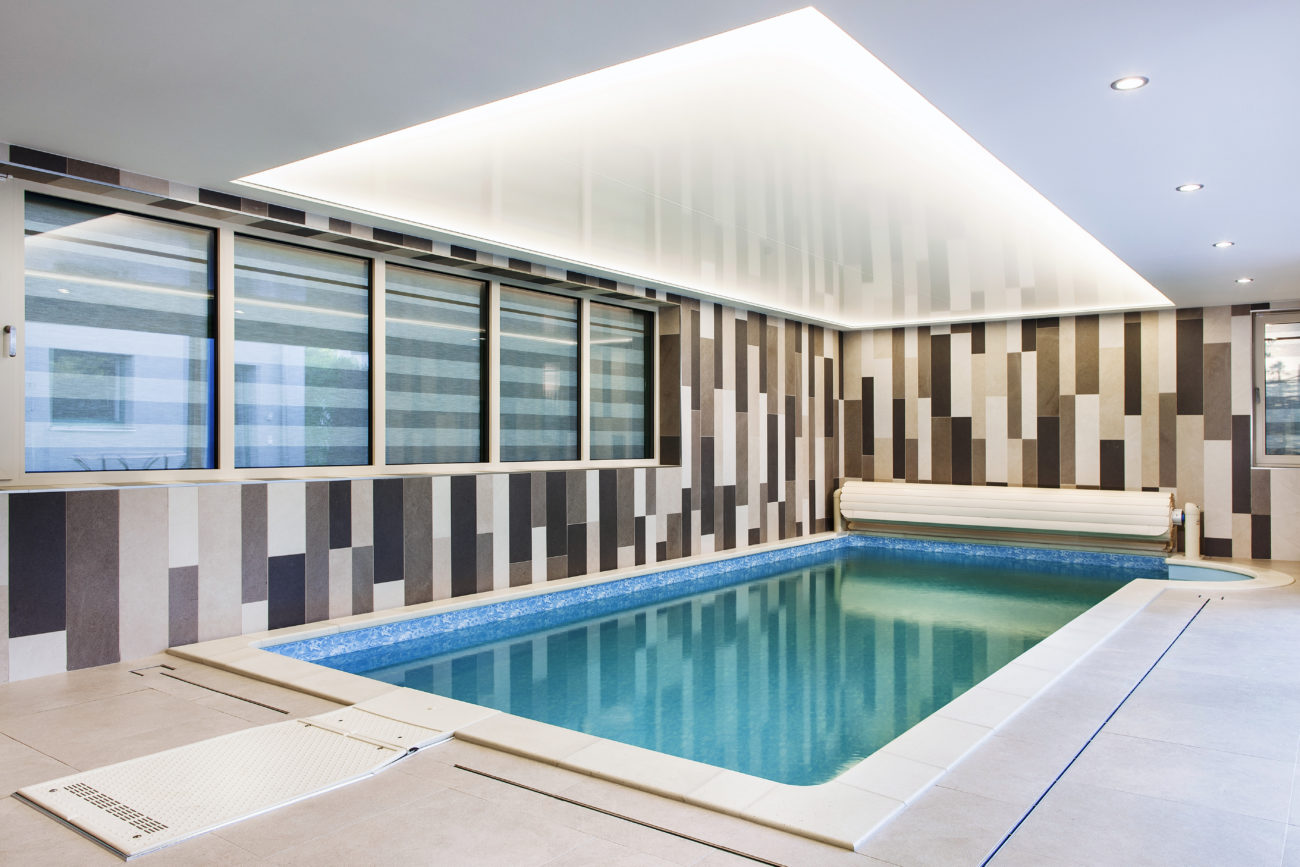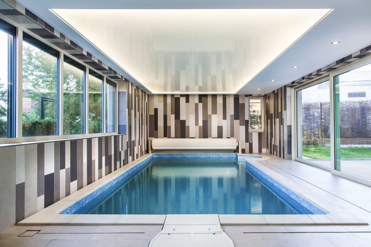 Translucentní lesklá fólie s obvodovým nasvícením nad bazénem