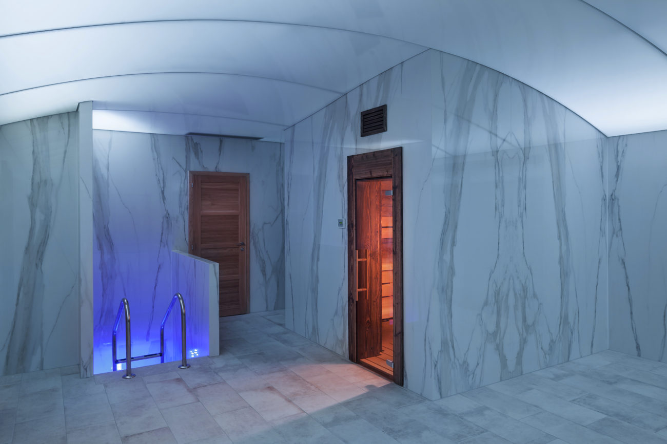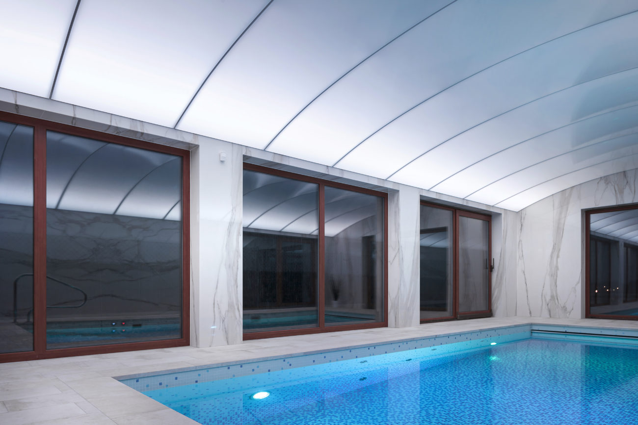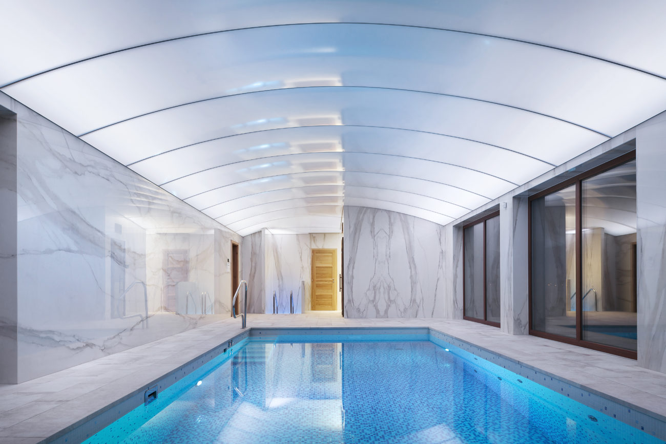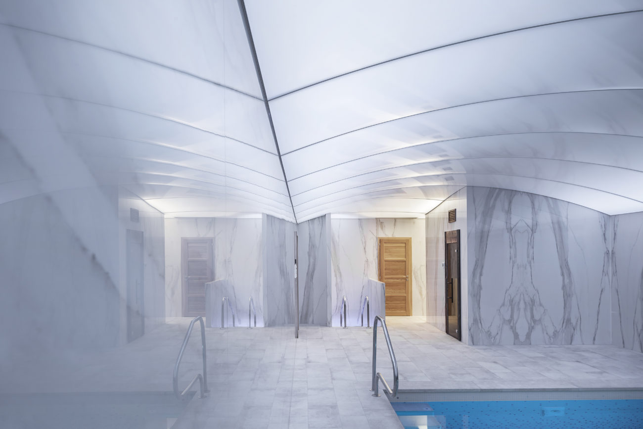 Realizace translucentní lesklé fólie ve tvaru klenby s RGB nasvícením, Plzeň