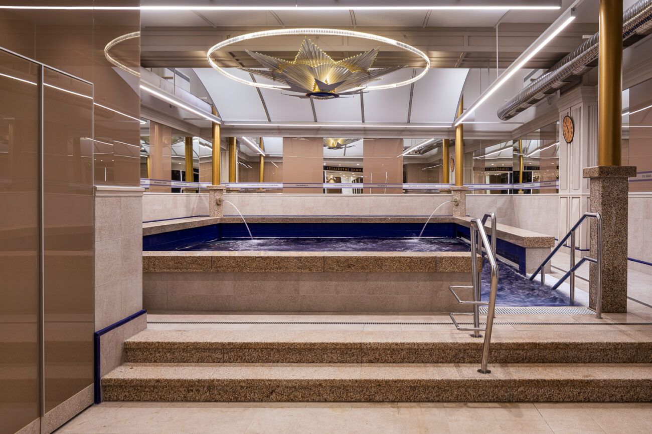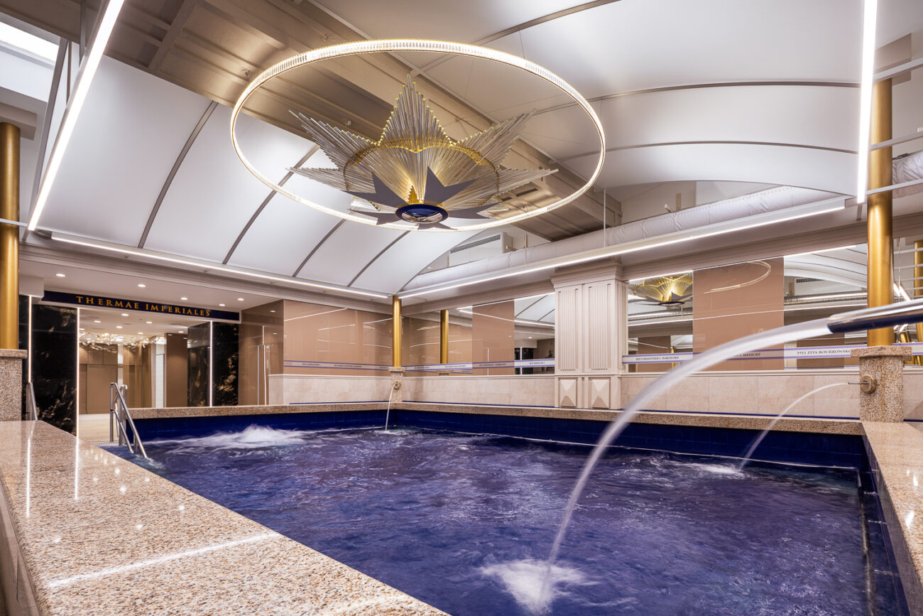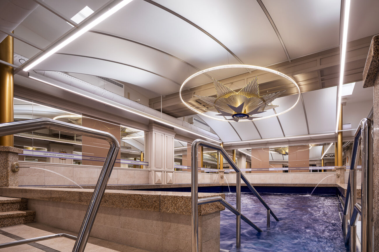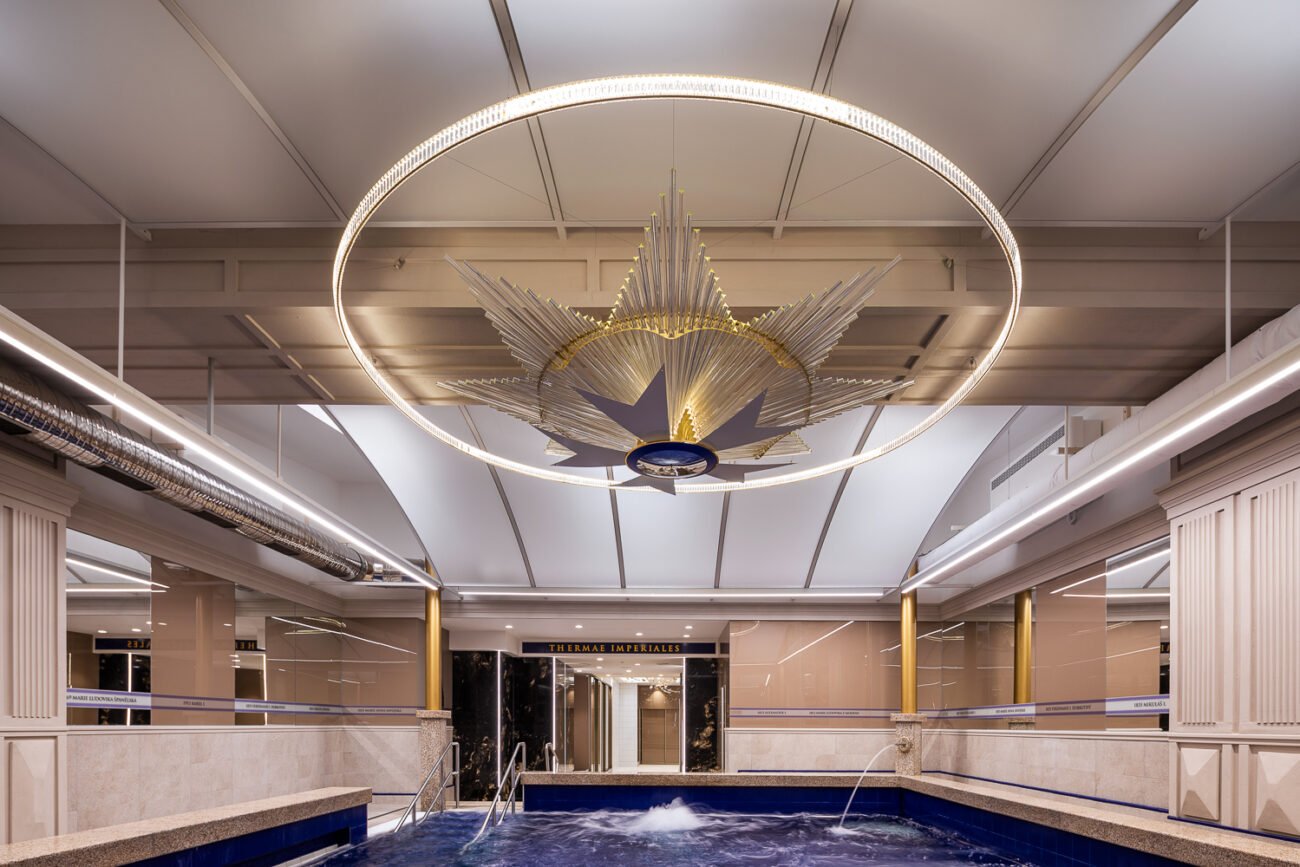 V projektu Císařských lázní v Teplicích jsme podle návrhu architekta Petra Sedláčka vytvořili klenbu nad bazénem. Hliníkovou konstrukci vyrobila naše sesterská společnost Cubis Metal. Konstrukce byla vyplněna translucentní fólií Barrisol propouštějící až 70 % denního světla. Cílem bylo designové zakrytí světlíků na stropě a vytvoření příjemného prostředí pro relaxaci. Fólie Barrisol jsou ideální při použití ve vlhkém prostředí díky svým jedinečným vlastnostem.