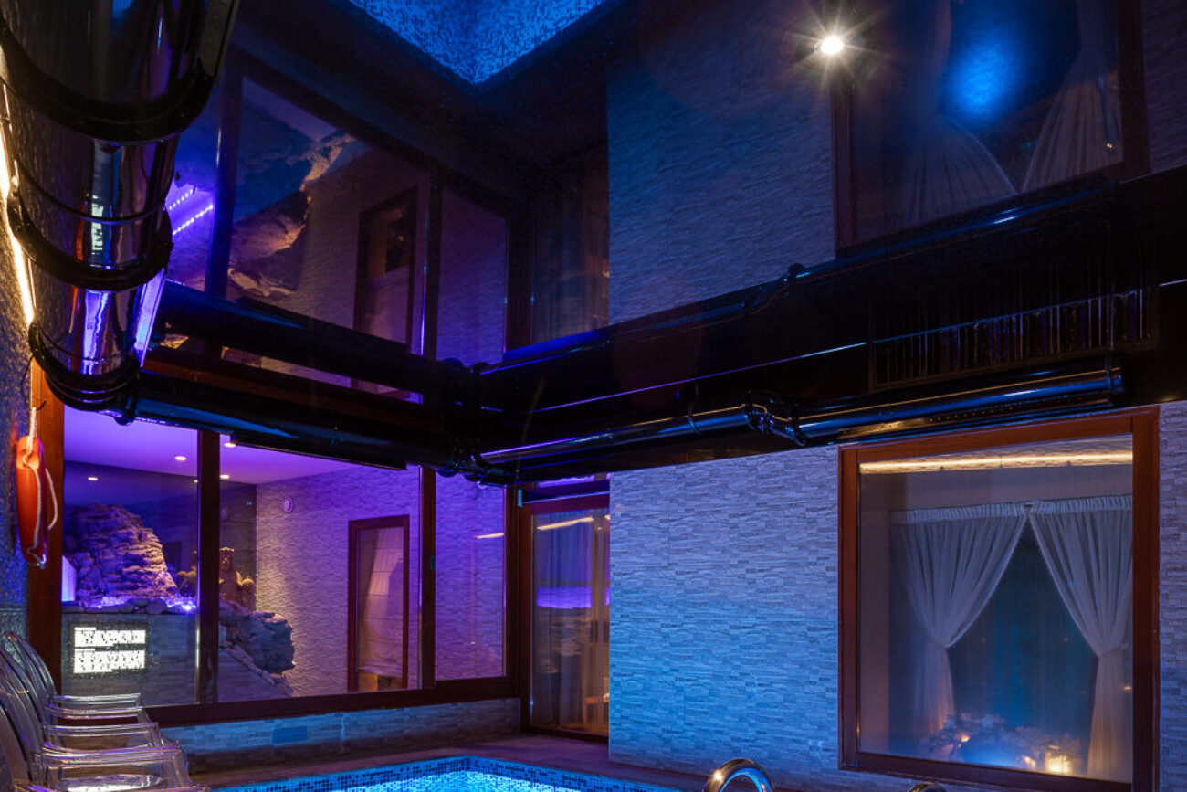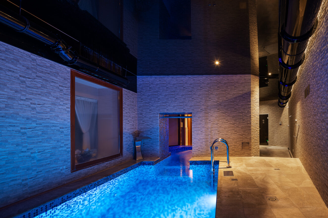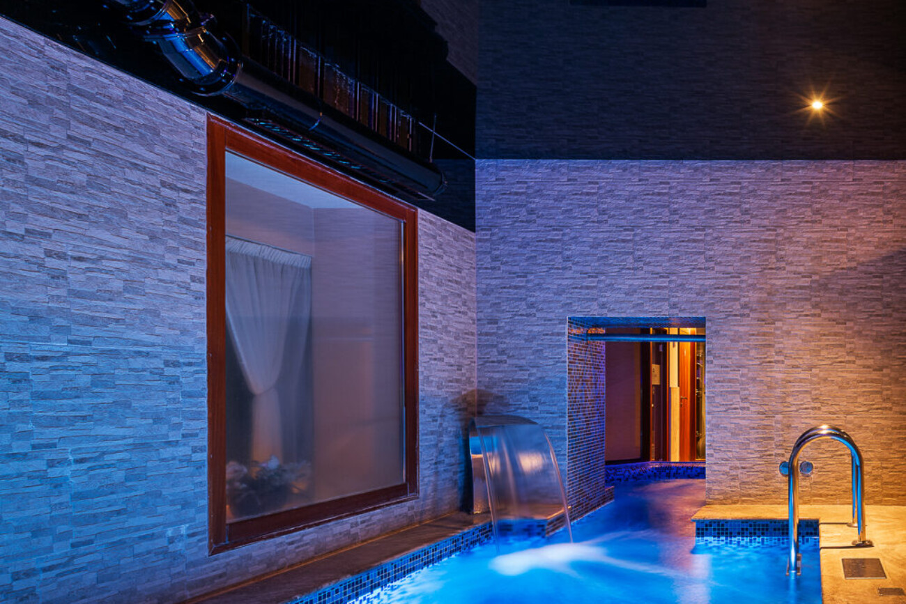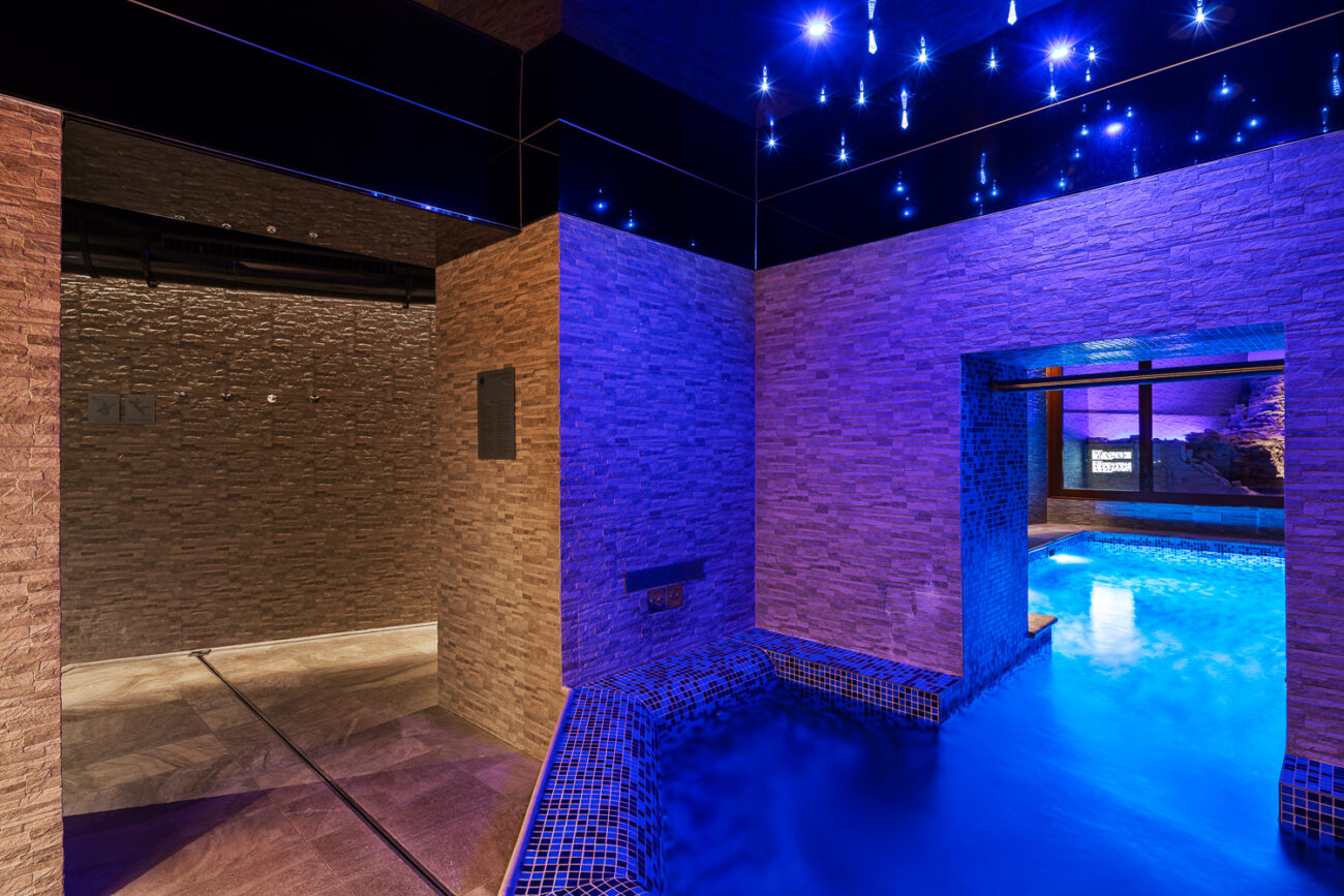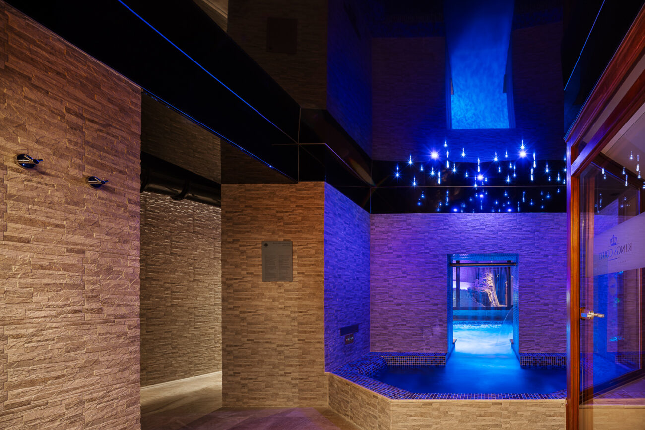V zadání od investora bylo podpořit příjemnou intimní atmosféru pro relaxaci pomocí Barrisolu a zároveň prostor opticky zvětšit. Dle zadání od architekta byla použita černá lesklá fólie Barrisol vhodná pro vlhké prostředí wellness. Původní strop pro velkou vlhkost v prostoru SPA musel být často opravován. Po instalaci pnuté fólie je tento problém odstraněn. Dominantou prostoru je osvětlený bazén obložený mozaikou, který se zrcadlí v novém podhledu. Vstup je na přání zákazníka doplněn o nasvícené krystaly.