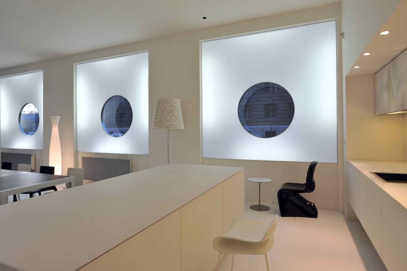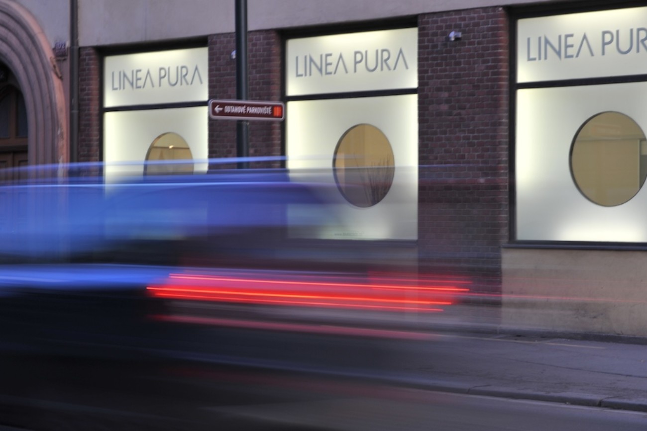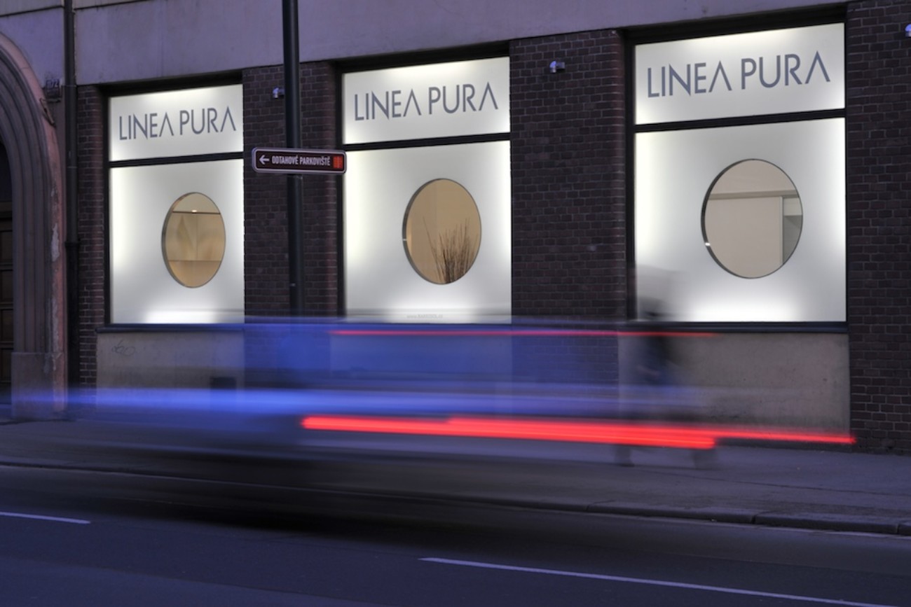 Realizace podsvětlených ploch ve výlohách studia LINEA PURA, Praha