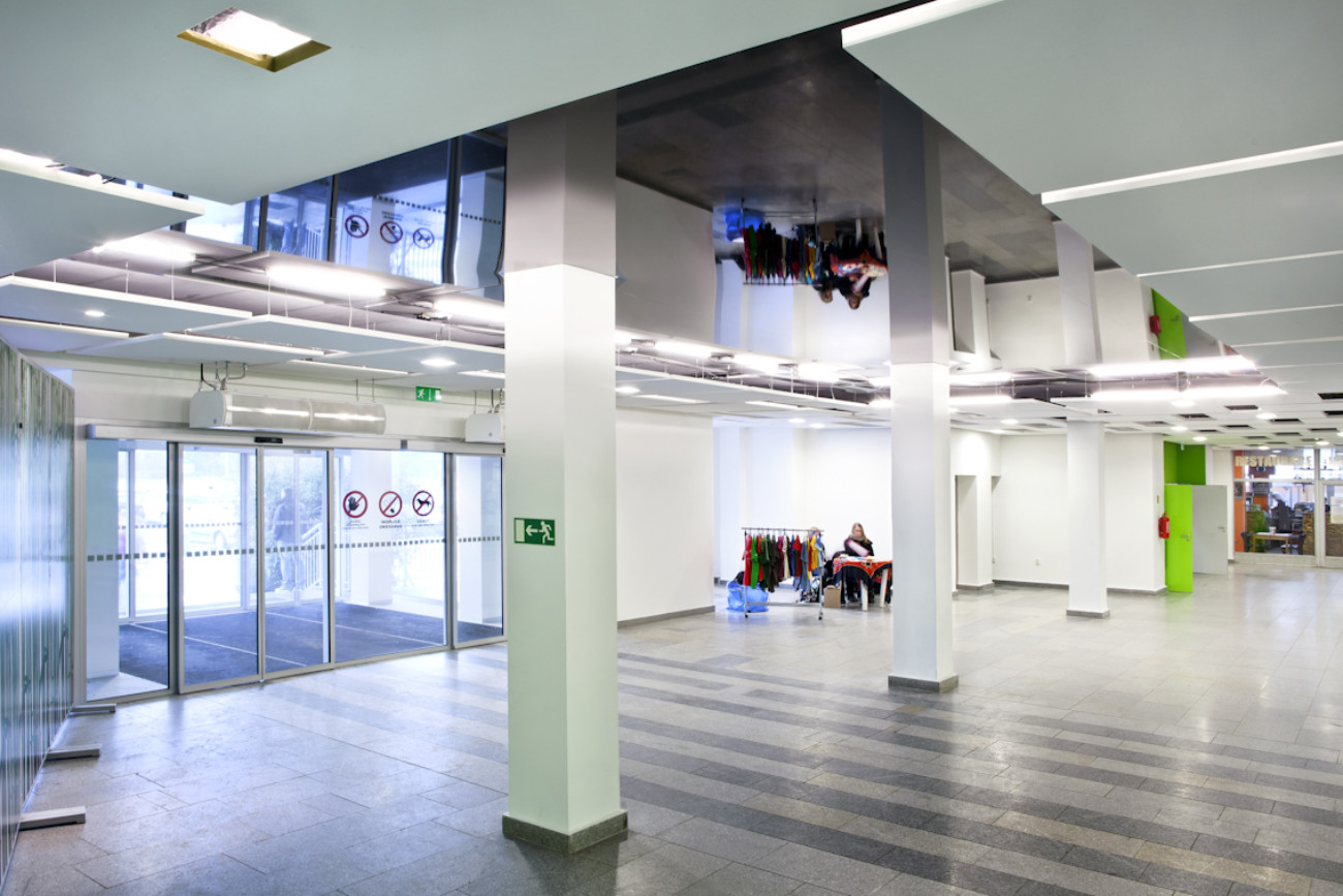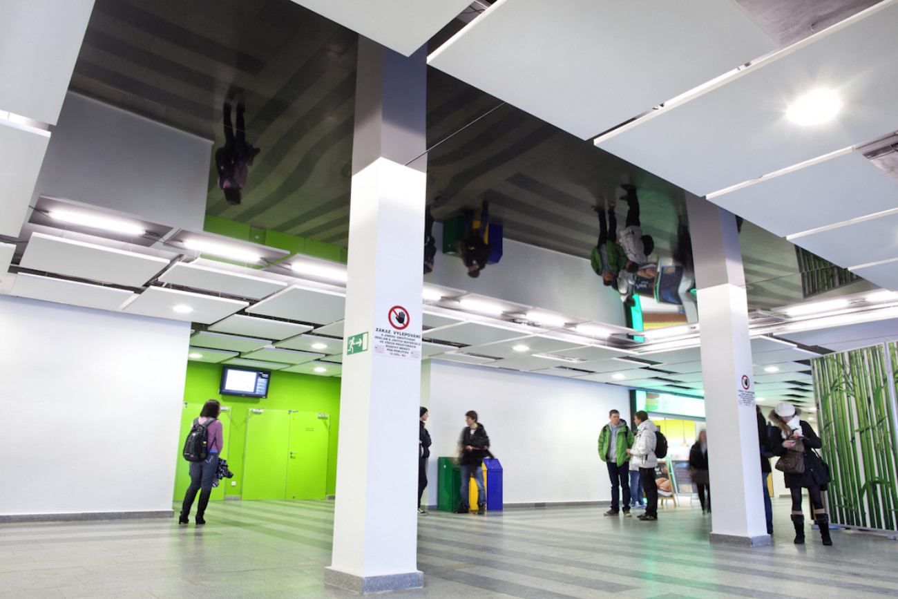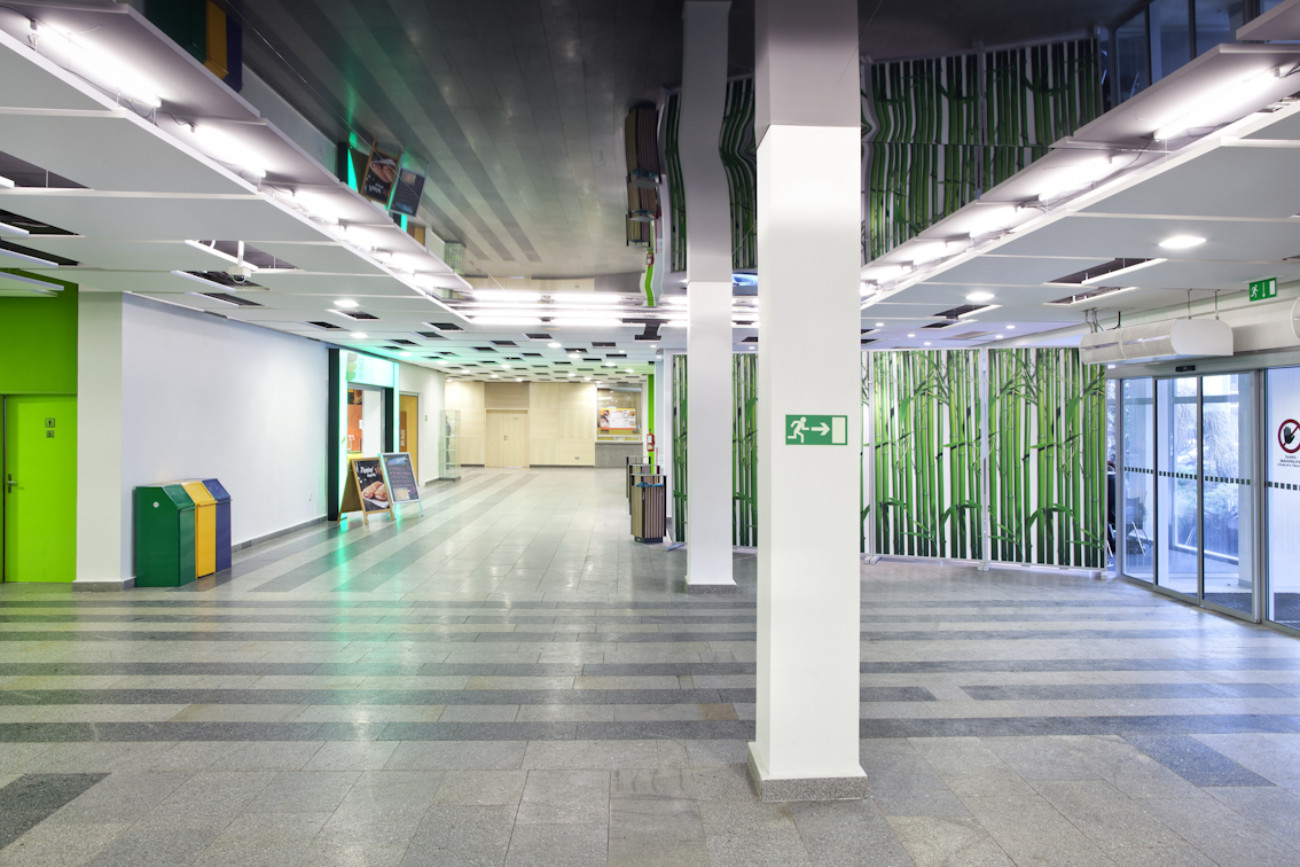 Realizace černé lesklé fólie ve vstupních prostorách menzy CZU, Praha Suchdol