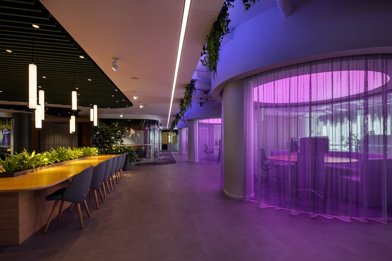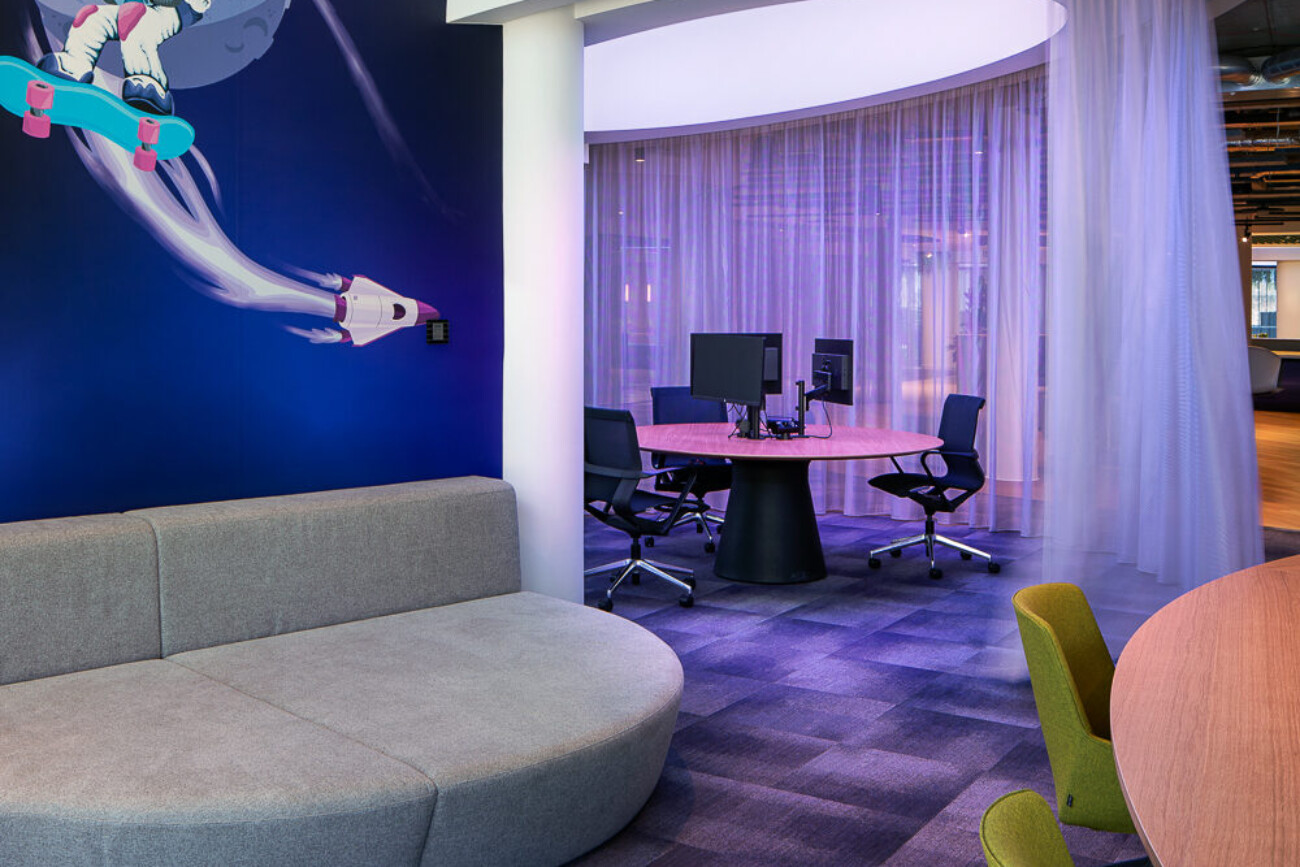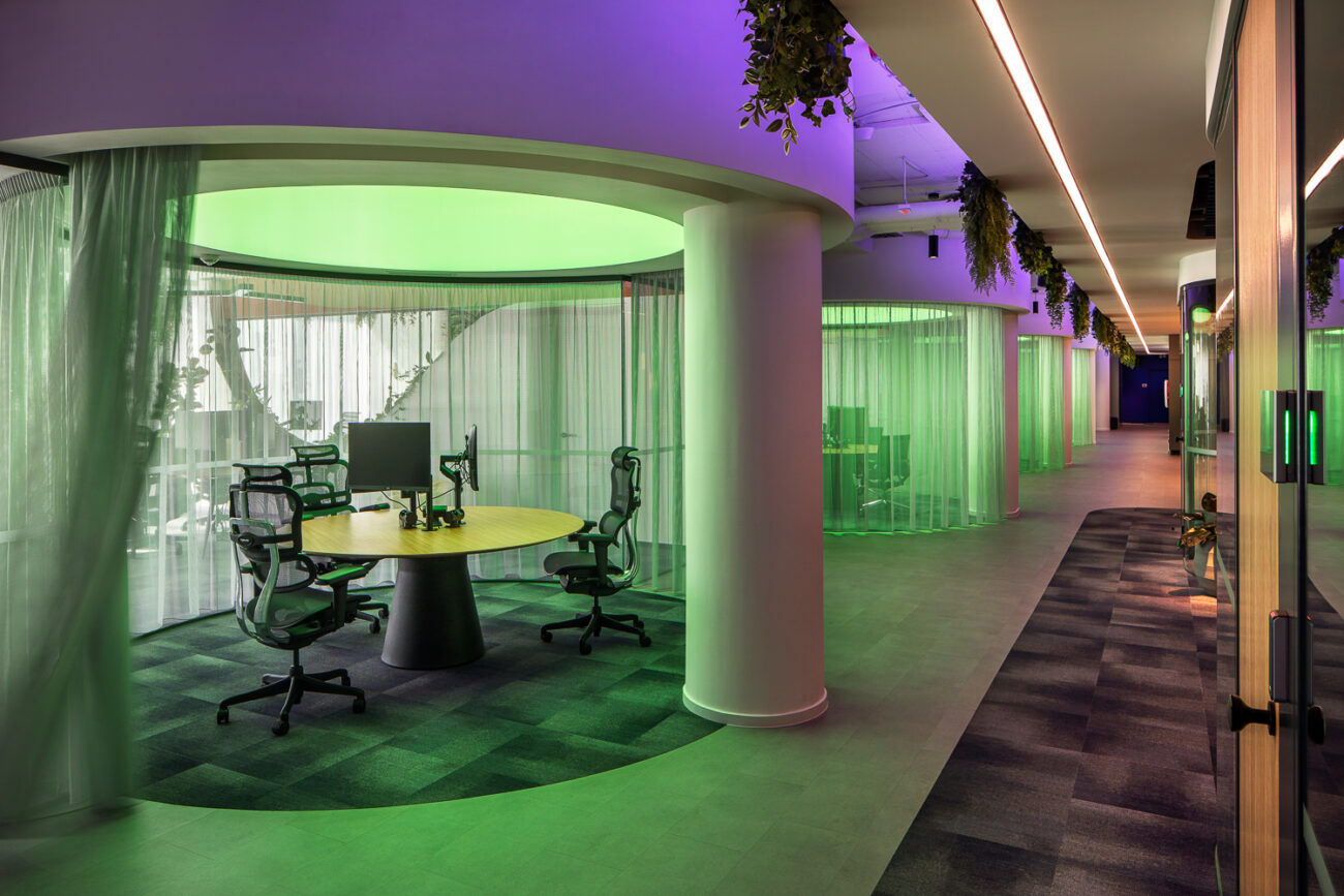 Nové kanceláře NFCtron jsou cestou do budoucnosti. Interiéry reflektují kulturu společnosti plnou energie, dynamiky a disciplíny. Futuristické prvky a minimalistický design, komunitní prostor včetně dětského koutku se skluzavkou a podcastovým studiem, „inkubátory“ pro nové členy týmu, vlastní kavárna a relax zóny