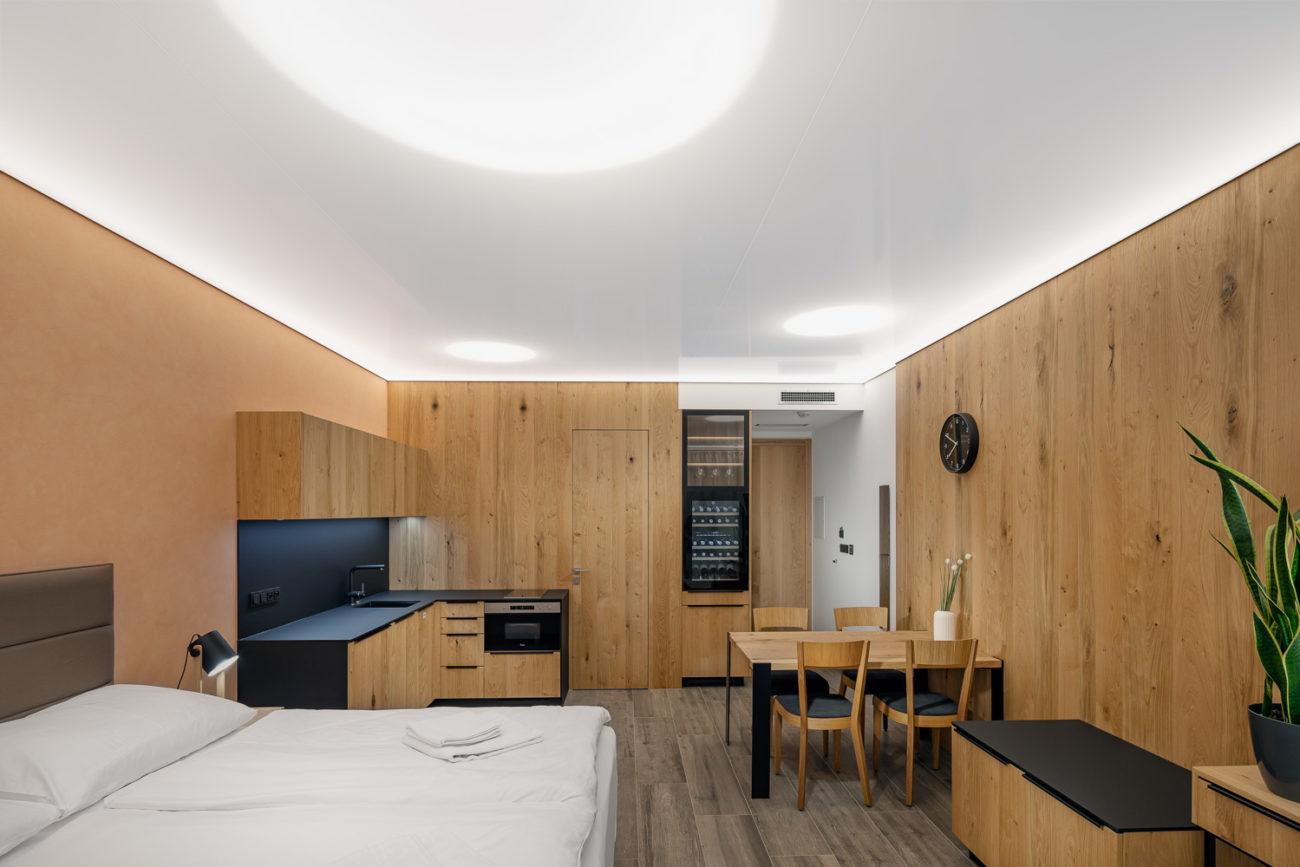 BARRISOL Lumiére – světelné podhledy v celém penzionu zajištují rovnoměrné a příjemné nasvícení jednotlivých prostor