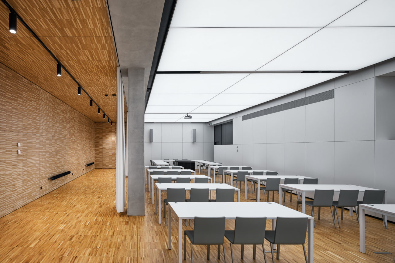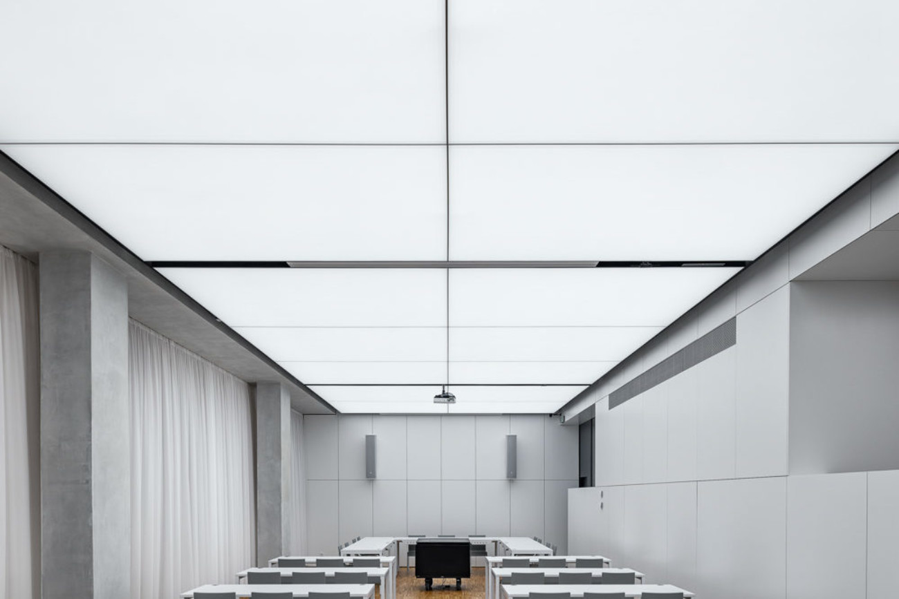 BARRISOL Lumiére Acoustics – světelné akustické boxy, zajišťující rovnoměrné nasvícení a zároveň zlepšují doby dozvuku v zastupitelském sále