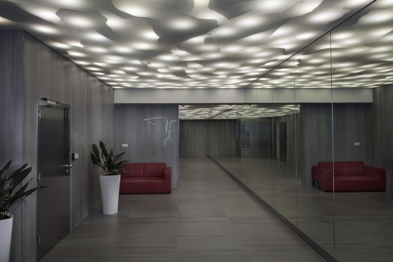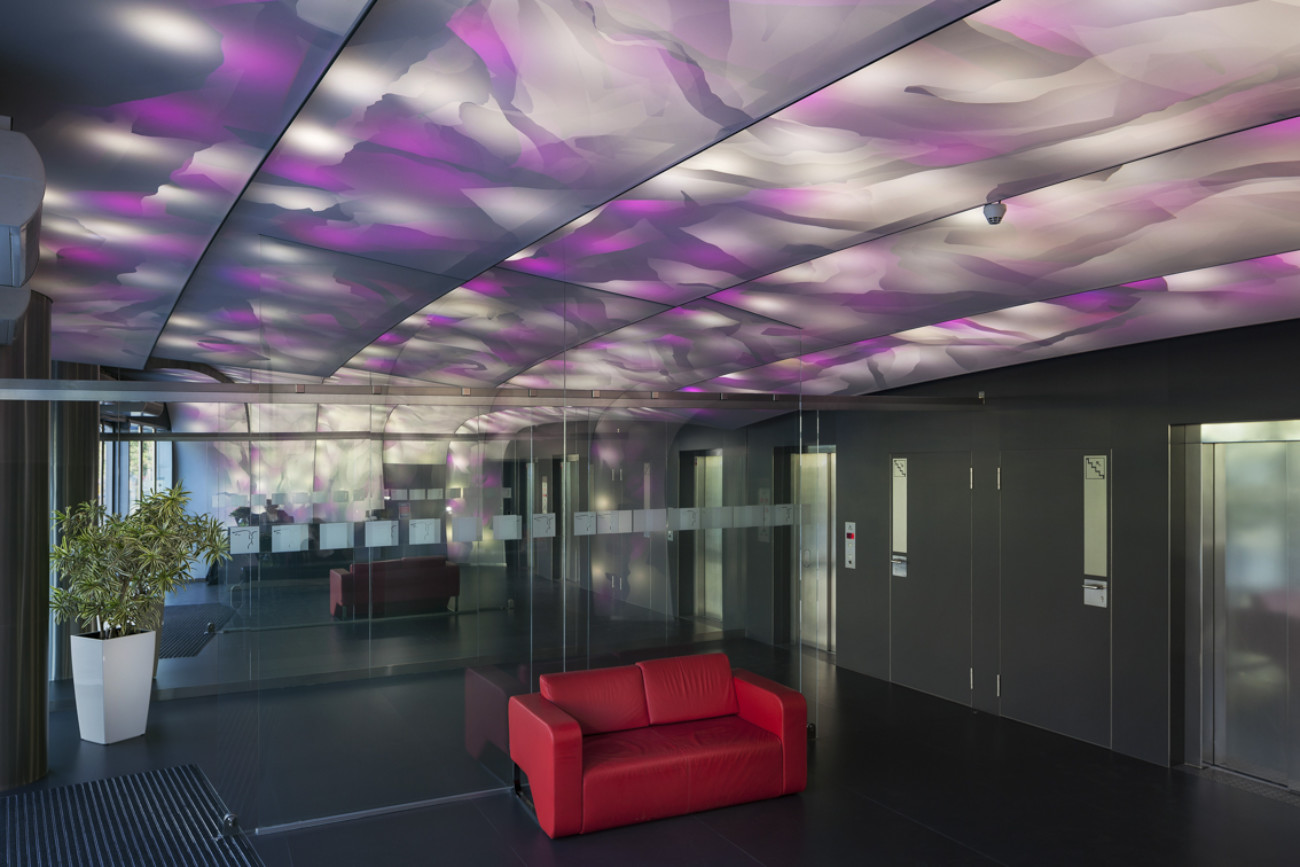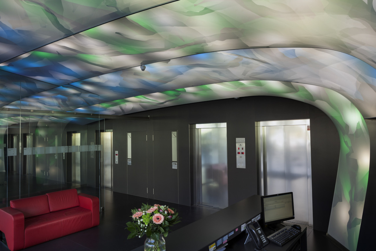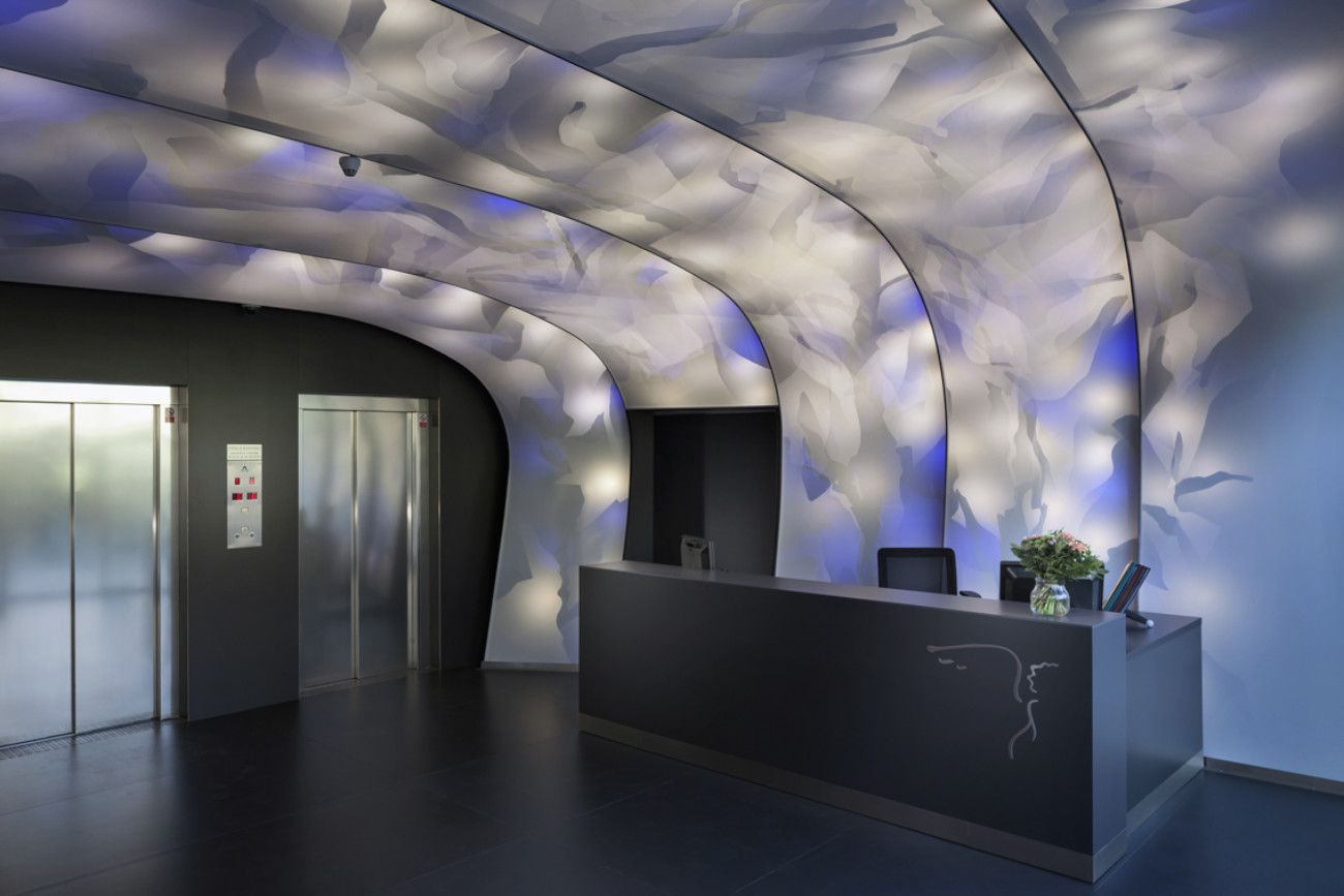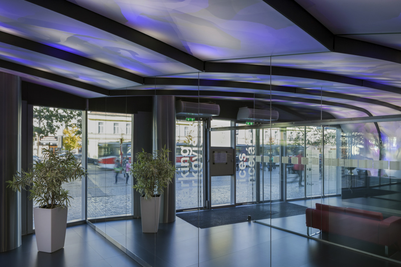 Světelné dekorativní stěny a stropy ve 2 recepcích v budově Zlatý Anděl, Praha 5